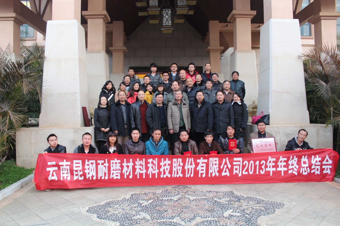云南昆鋼耐磨材料科技股份有限公司2013年年終總結會于2013年12月21日在昆明海麗賓雅度假酒店成功召開。會上,優(yōu)秀員工代表發(fā)表了工作感言,公司部門負責人(或代表)、公司經(jīng)營班子成員分別作了2013年度工作總結匯報。公司領導及股東代表均作了重要講話,對公司2013年取得的成績給予了高度肯定,并對公司2014年即將開展的工作做出了重要指示。